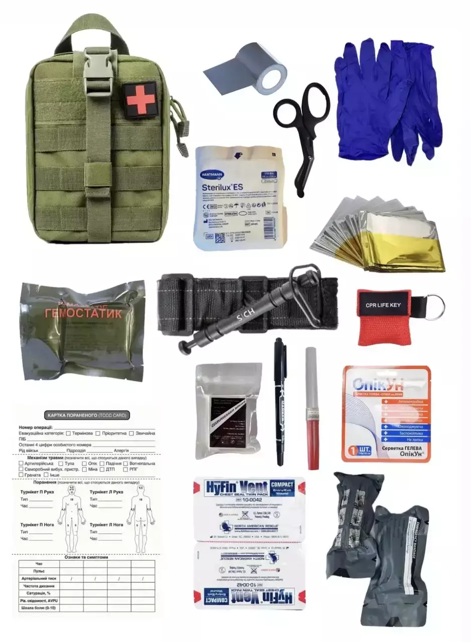 Аптечка тактична військова укомплектована №10 в підсумку зі швидким скидом олива