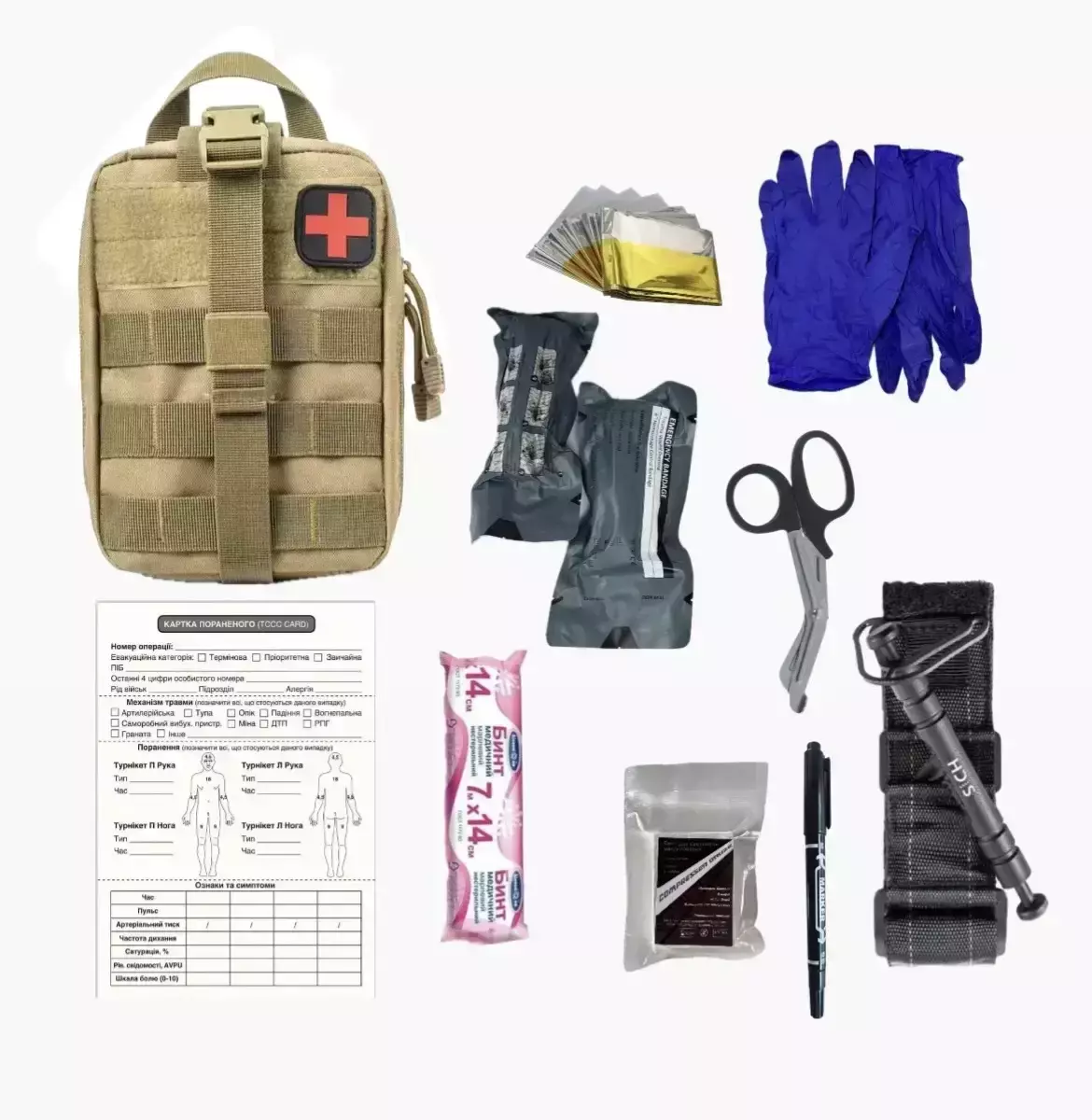 Аптечка тактична військова укомплектована №8 в підсумку зі швидким скидом койот