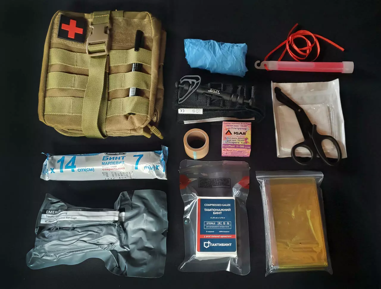 Аптечку можна доукомплектувати : гемостатиком, гідрогелевою пов'язкою Опікун, декомпресійною голкою, оклюзійною наліпкою HYFIN Vent, щитком на око, назофарингеальною трубкою з лубрикантом, бандажем ізраїльським 6 дюймів, ножицями 19см. Уточнюйте! Будемо раді зібрати аптечку саме під Ваш запит!