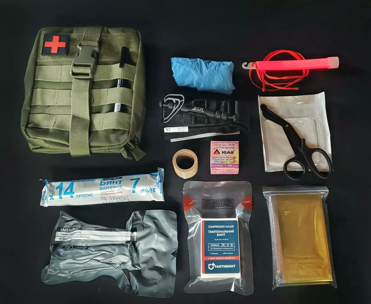 Аптечку можна доукомплектувати : гемостатиком, гідрогелевою пов'язкою Опікун, декомпресійною голкою, оклюзійною наліпкою HYFIN Vent, щитком на око, назофарингеальною трубкою з лубрикантом, бандажем ізраїльським 6 дюймів, ножицями 19см. Уточнюйте! Будемо раді зібрати аптечку саме під Ваш запит!
