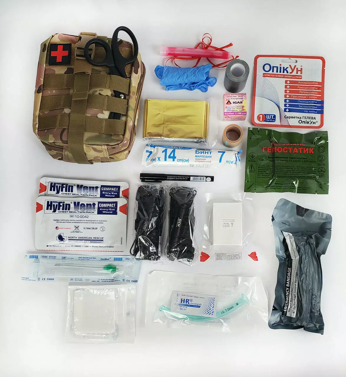 - Комплектация аптечки: Бинт марлевый|Пакет перевязочный |Салфетка стерильная |Жгут кровоостанавливающий|Ножницы|Перчатки медицинские|Термопокрывало|Повязка ИПП|Бандаж|Лейкоп