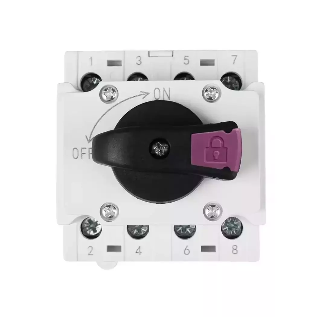Ізоляторний вимикач з обертовою ручкою 1500V 32A 4P на Din-рейку – це надійний та зручний засіб для безпечного відключення електричних ланцюгів, який забезпечує високу продуктивність та зручність експлуатації.