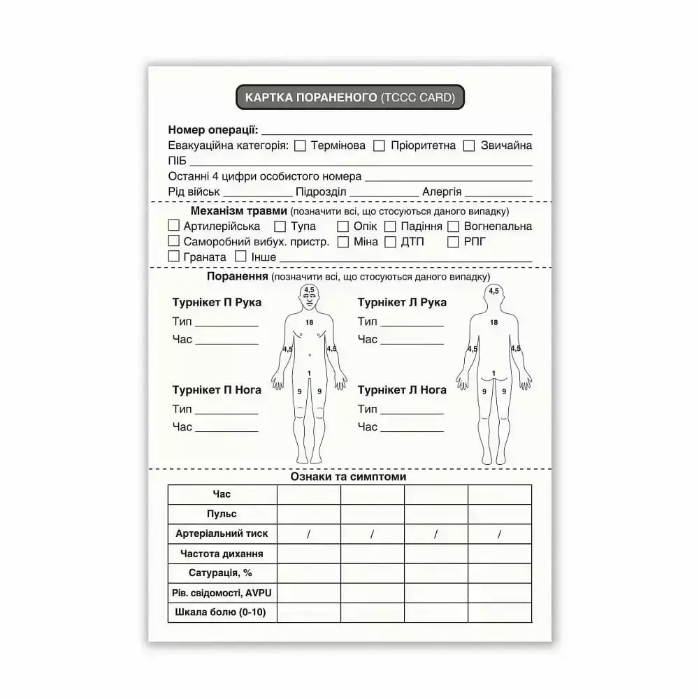 Картка огляду пораненого, надання допомоги і евакуації в умовах