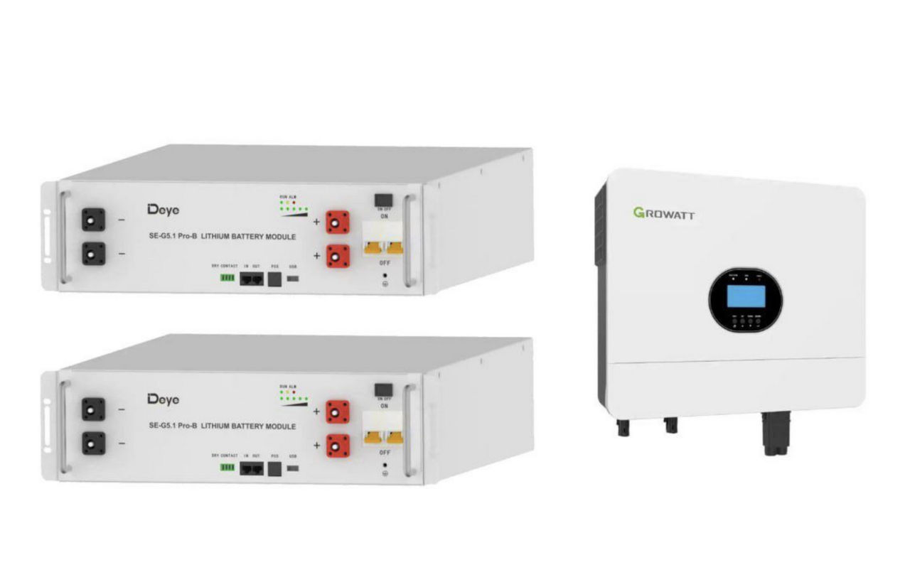 Комплект: акумуляторна батарея Deye SE-G5.1Pro-B (2 шт.) + однофазний низьковольтний інвертор Growatt SPF6000 ES PLUS +WIFI-F 6 кВ