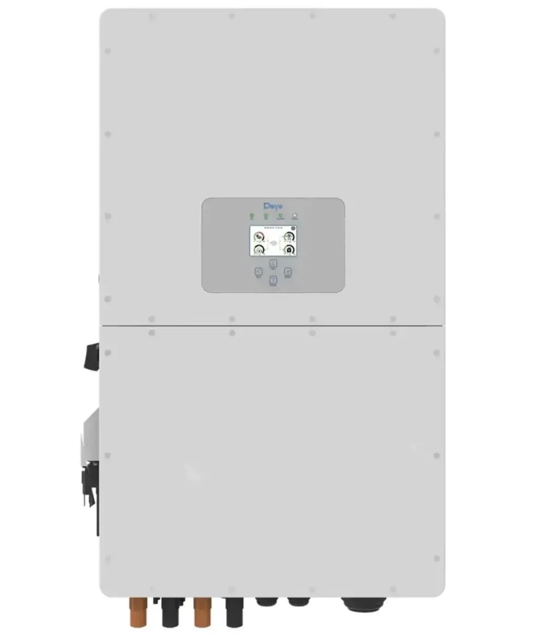 Гібридний трифазний високовольтний інвертор Deye 50 кВт — це високоефективний пристрій для перетворення постійного струму в змінний, який призначений для використання в сонячних енергетичних системах. Він поєднує в собі можливості роботи з сонячними батареями, мережею електропостачання та резервними батареями. Завдяки своїй потужності 50 кВт, цей інвертор ідеально підходить для комерційних та промислових об'єктів, забезпечуючи стабільне електропостачання навіть при високих навантаженнях.