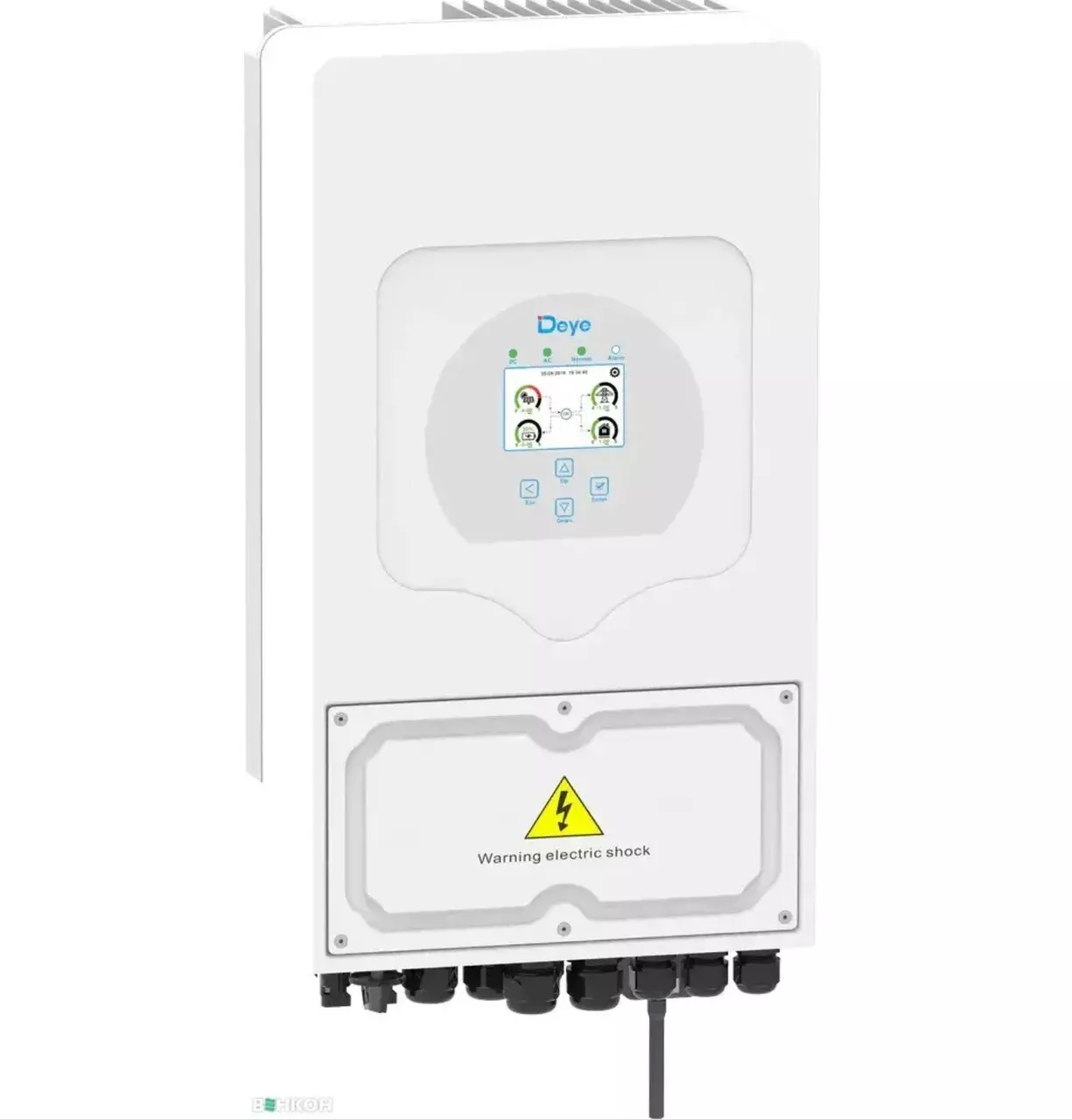 Deye SUN-6K-SG03LP1-EU WiFi - це мережевий гібрид, частина його працює як мережевий інвертор, основне завдання якого - перетворювати сонячну енергію в змінний струм 220В 50Гц. Потужність інвертора з генерації в мережі 6000Вт. Інвертор може працювати в системі "Зелений тариф" або для компенсації власного споживання будинку. Наприклад, у Вас оформлений ЗТ, тоді інвертор буде доступний всю енергію сонця, спрямовувати на потреби будинку, зарядку акумулятора, а надлишки відправляти в зовнішню мережу. Якщо у Вас немає можливості або бажання оформити ЗТ, щоб активувати заборону продажу надлишків, інвертор Deye буде генерувати рівно стільки сонячної енергії, скільки потрібно для забезпечення потреб споживачів. Як після інвертора так і до інвертора в зоні дії трансформатора струму,