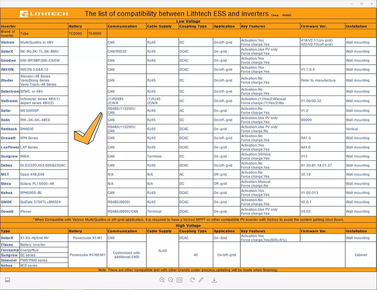 • Робота з літієвими акумуляторами за CAN, RS485 протоколом та на ручних налаштуваннях, а також підтримка свинцево-кислотних акумуляторів
