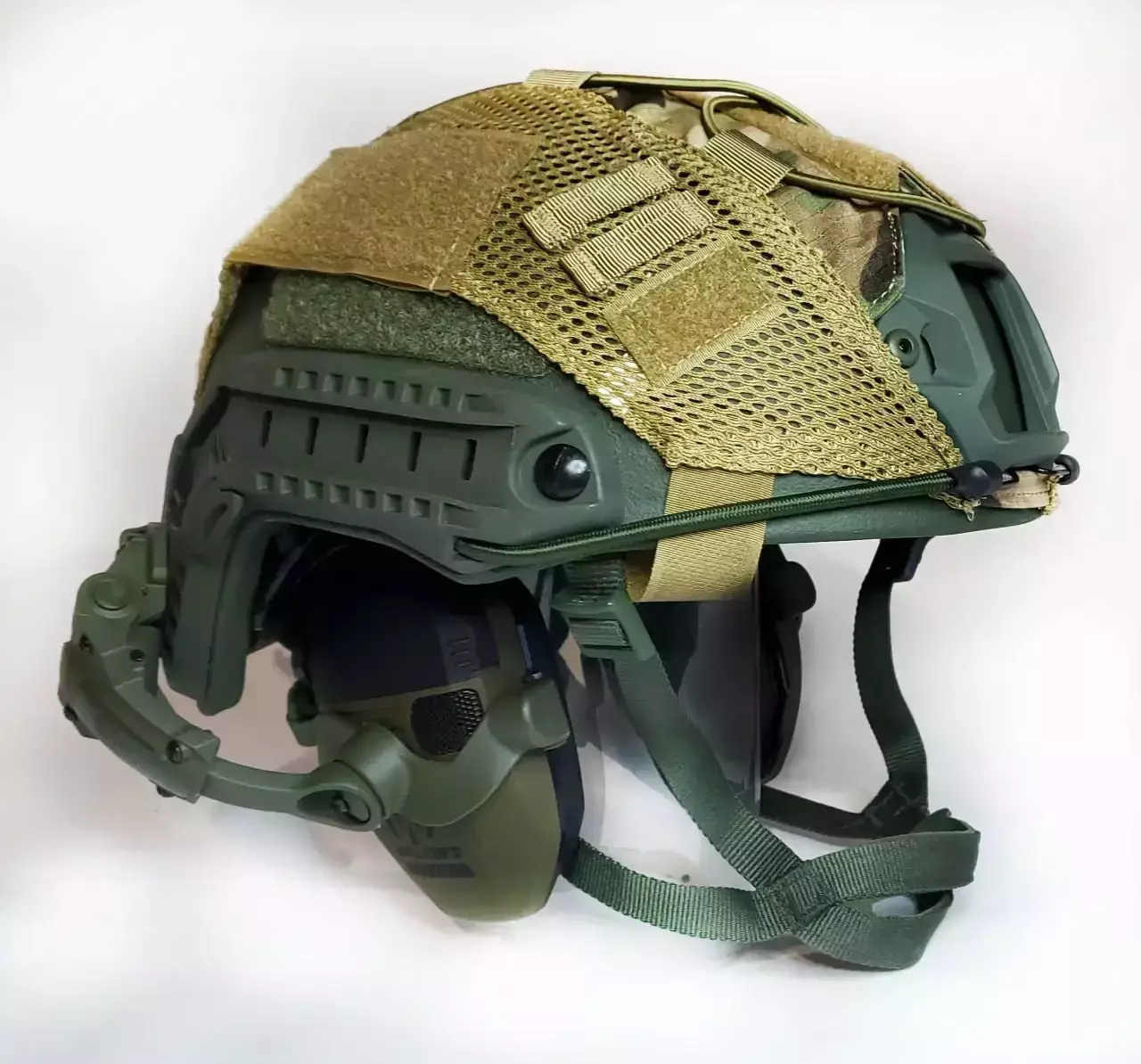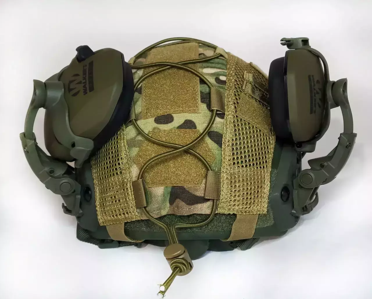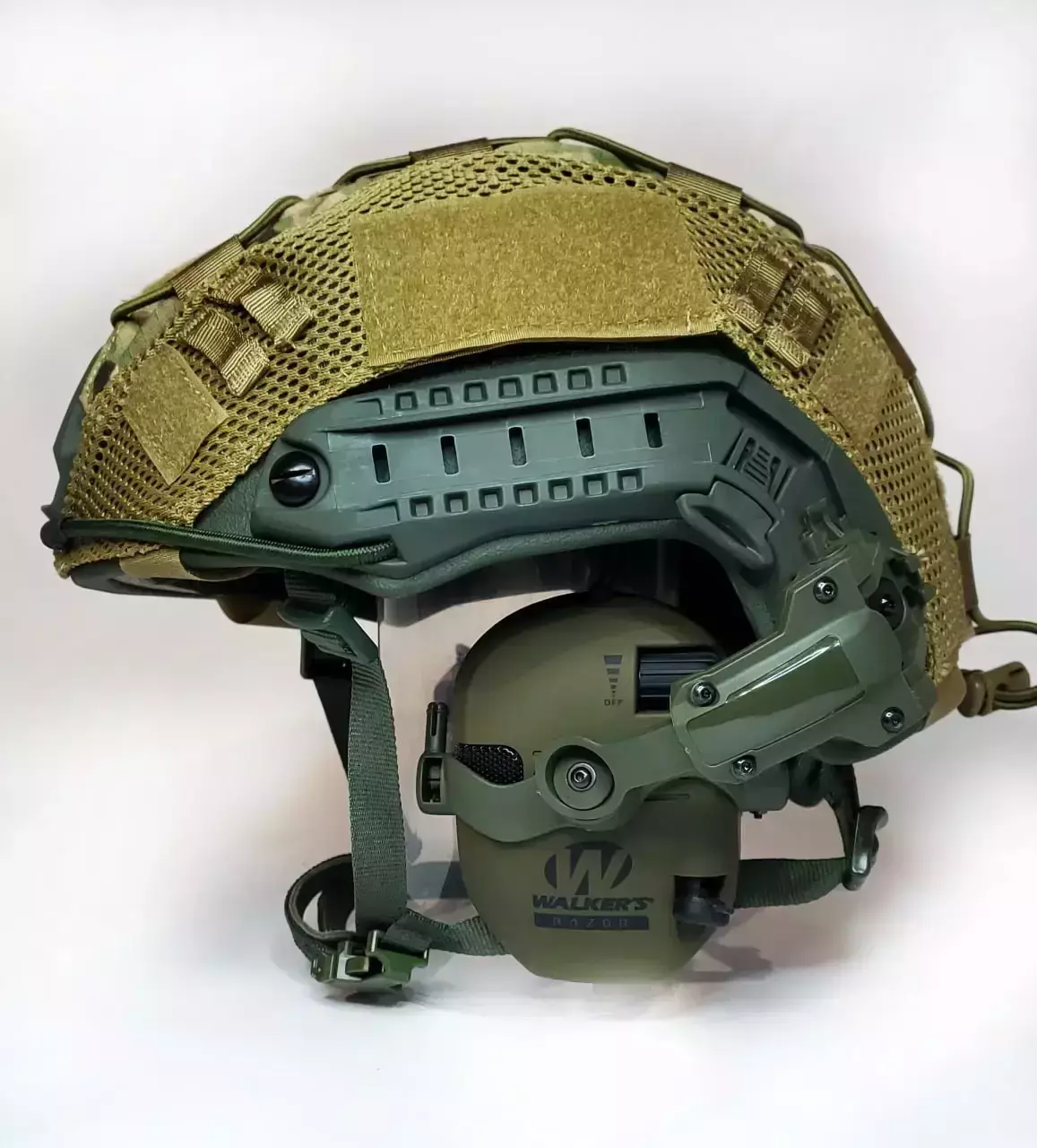 Комплект!! Шолом каска + кавер + адаптери "чебурашки" + активні навушники Walker's Razor