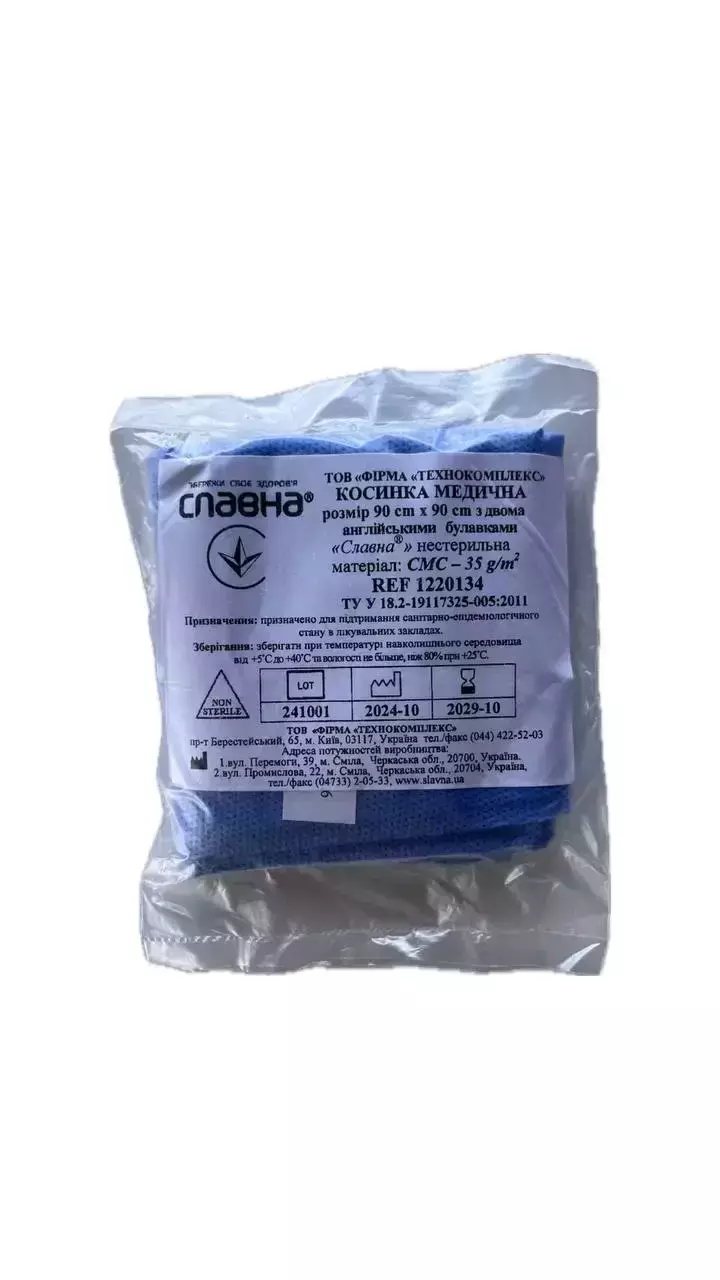 Косинка призначена для імобілізації кінцівок (підвішування руки на косинку), фіксації перев'язки, закріплення шин і т. п., розмір 90х90 см.