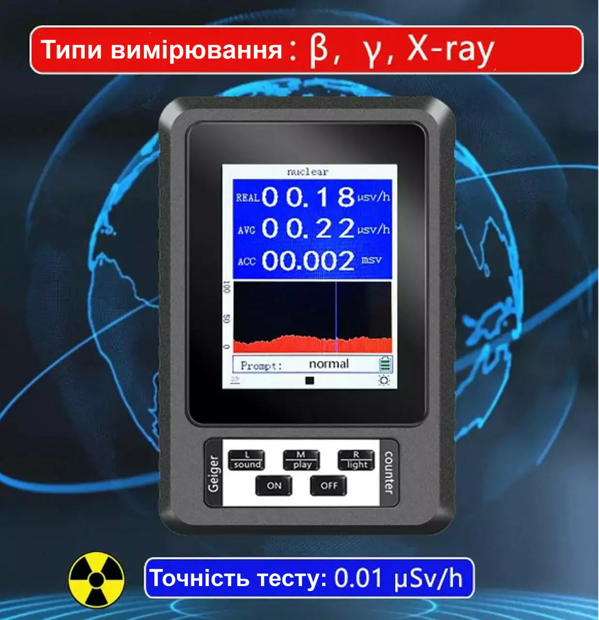Чутливість: 0,01 мкЗв.