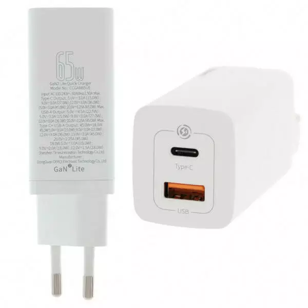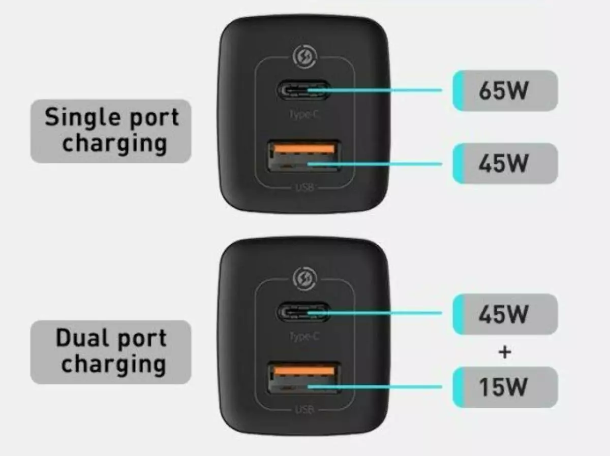 Baseus GaN2 Lite Quick Charger 65W підтримує протоколи швидкого заряджання PD 3.0, PPS, QC 3.0, SCP, FCP, AFC, BC 1.2 та вихідну потужність до 65 Вт (порт Type-C) або 45 Вт (порт USB), що дозволить швидко зарядити ноутбук, смартфон, планшет, бездротові навушники та іншу мобільну електроніку.
