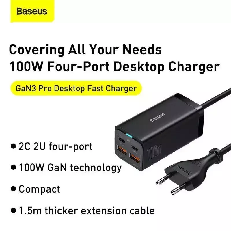 - 1x зарядний пристрій Baseus GaN3 Pro 100W з вилкою EU