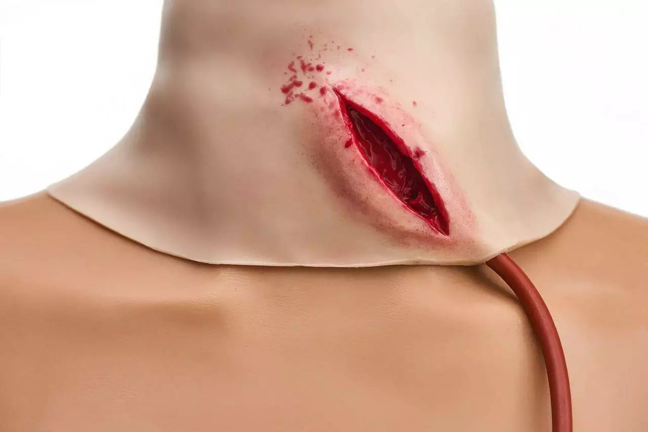 Цей муляж є незамінним інструментом для медичних тренінгів. Він реалістично імітує різане поранення шиї, що дозволяє практично відпрацьовувати ключові навички: