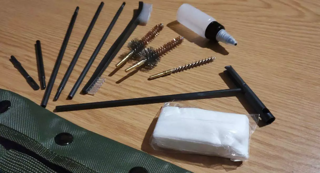 До комплекту входять необхідні аксесуари для підтримки спорядження в хорошому стані. Вони дозволяють видаляти бруд і тирсу, а також наносити олію.
