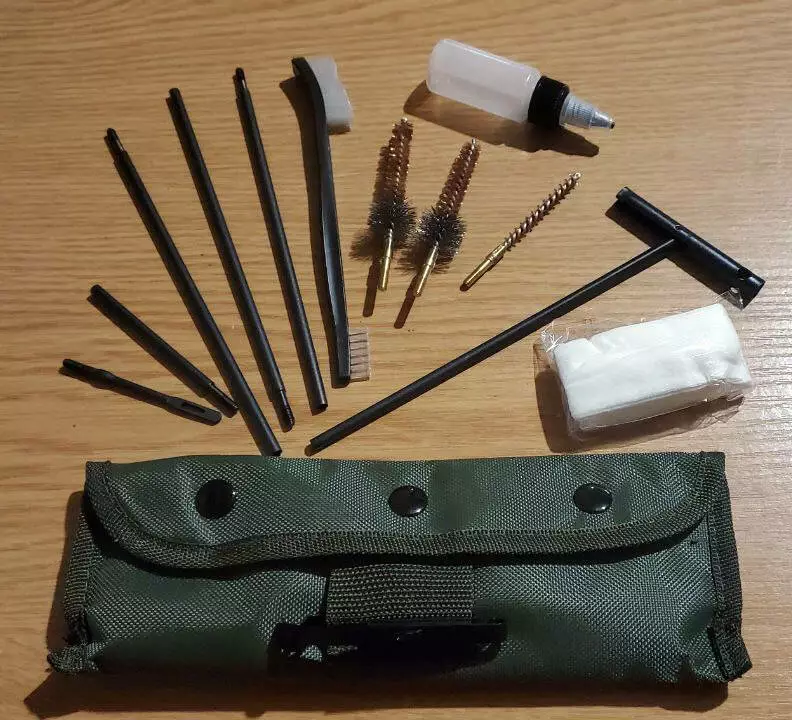 Все це поміщено в практичний нейлоновий чохол, що застібається на кнопки і оснащений кліпсом ALICE, що дозволяє прикріпити його до жилета або рюкзака. Усередині кейс розділений на 2 відділення, що застібаються на липучки, що додатково захищає вміст від випадання та переміщення, а також дозволяє відокремити брудні елементи набору.