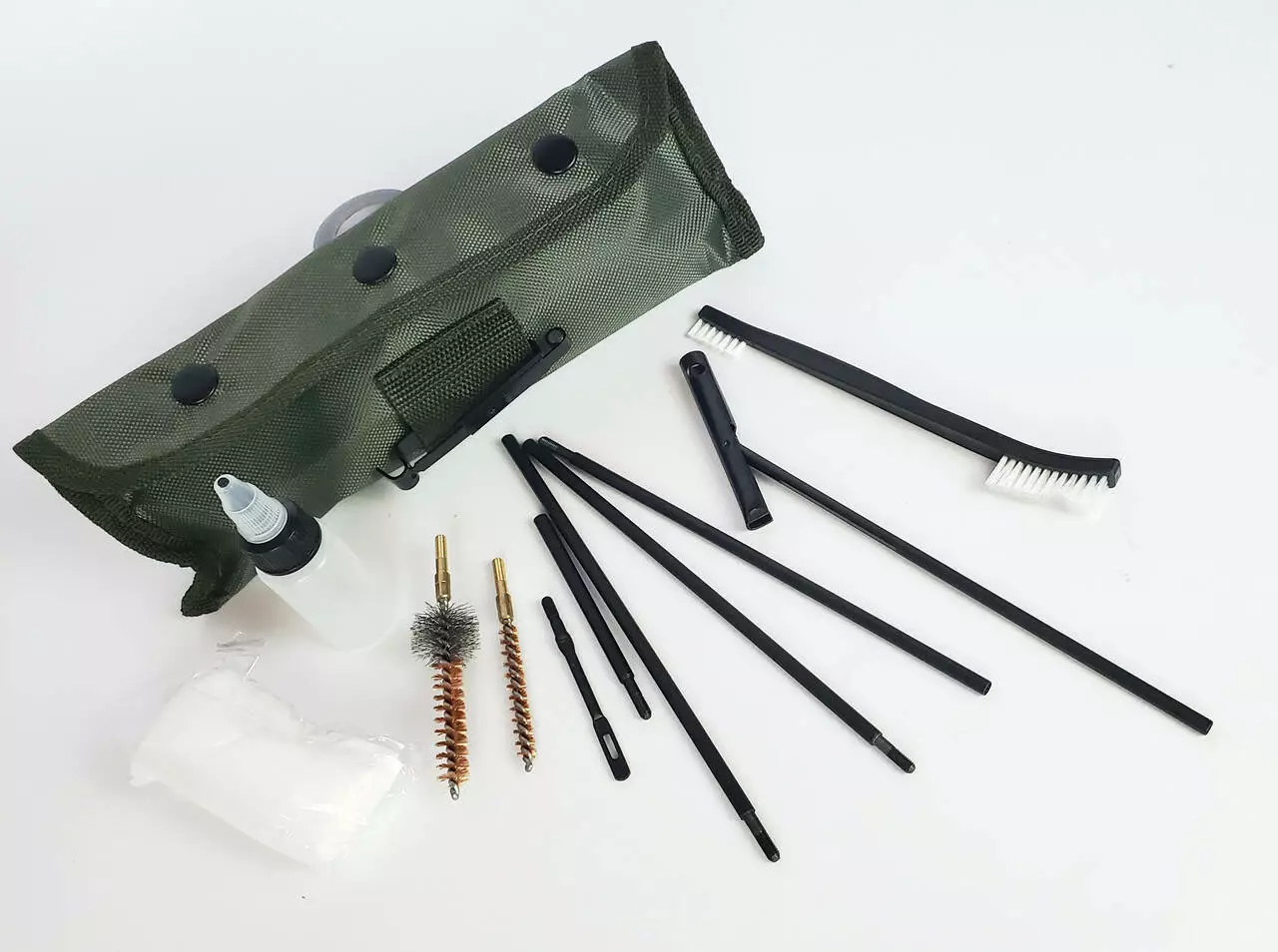 Все це поміщено в практичний нейлоновий чохол, що застібається на кнопки і оснащений кліпсом ALICE, що дозволяє прикріпити його до тактичного жилета або рюкзака. Усередині кейс розділений на 2 відділення, що застібаються на липучки, що додатково захищає вміст від випадання та переміщення, а також дозволяє відокремити брудні елементи набору.