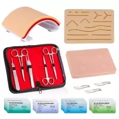 До набору входять шовні подушечки, інструменти та шви. Звичайні рани попередньо нарізані для негайної практики накладання швів. Крім того, глибина розрізу може бути різною залежно від навчальних потреб.