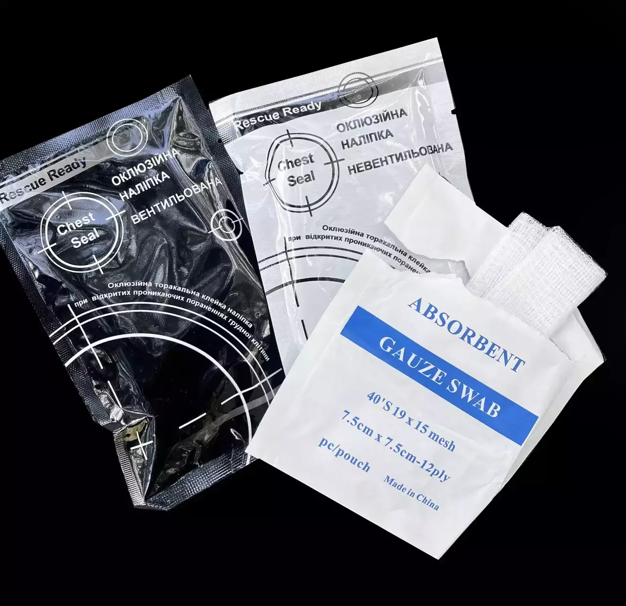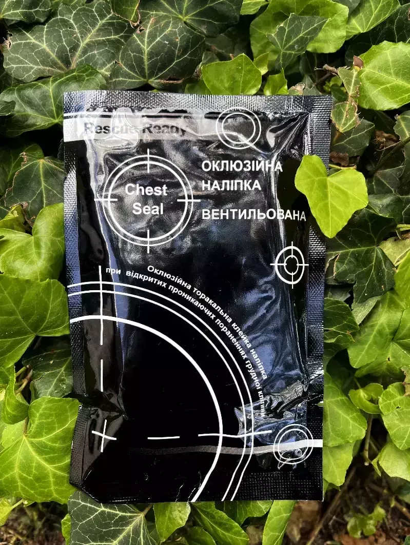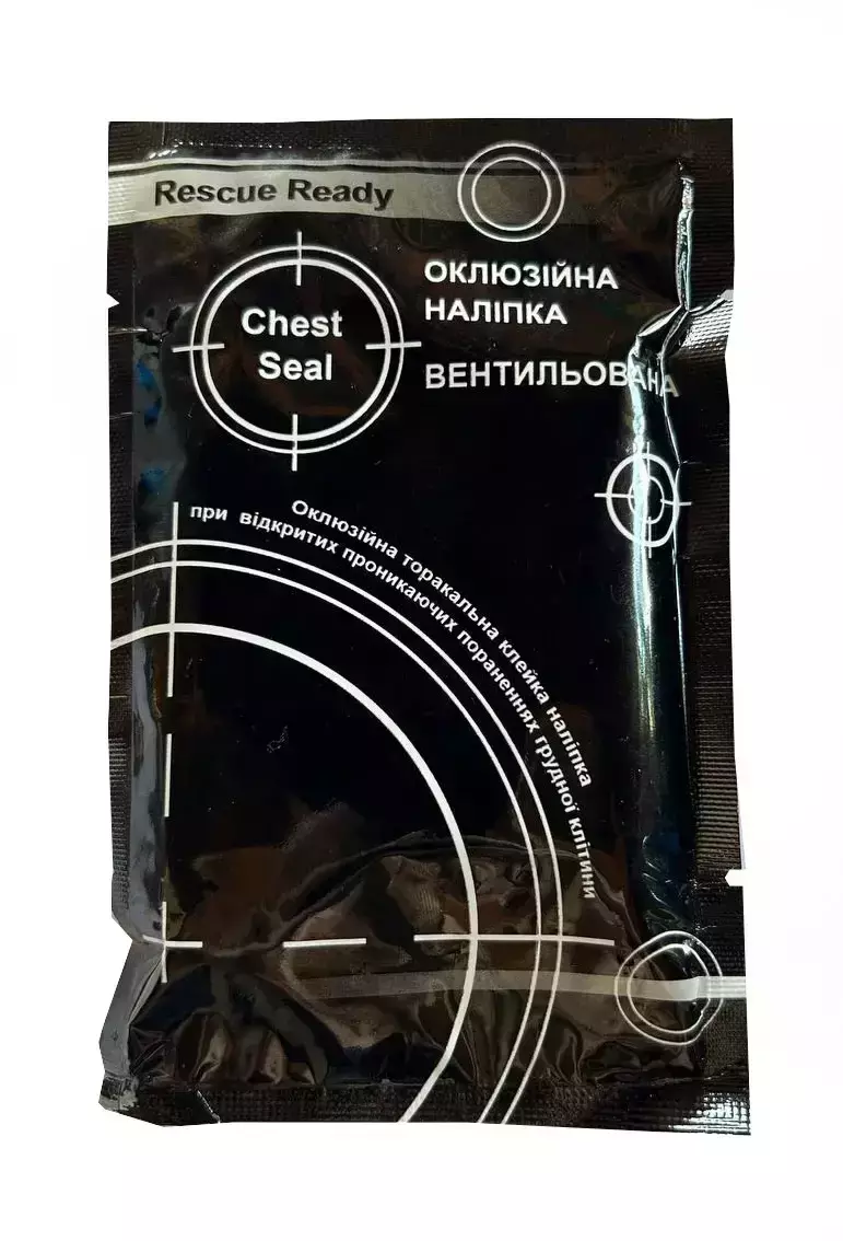 Не містить латексу. Має легку стійку до проколів упаковку, 6-дюймову круглу форму для оптимального покриття, подвійну ручку, розміщення без дотику. 4 вентиляційні канали, які запобігають попаданню повітря в грудну порожнину під час вдиху і дозволяють повітрю виходити через вентиляційні канали під час видиху. Удосконалена клейова технологія для чудової герметизації в найнесприятливіших умовах, включаючи спітнілих постраждалих. Наліпка спеціально розроблена з використанням гідрогелевого адгезиву медичного класу, достатньо міцного для прилипання до шкіри, яка піддається впливу крові, поту, волосся, піску або води.