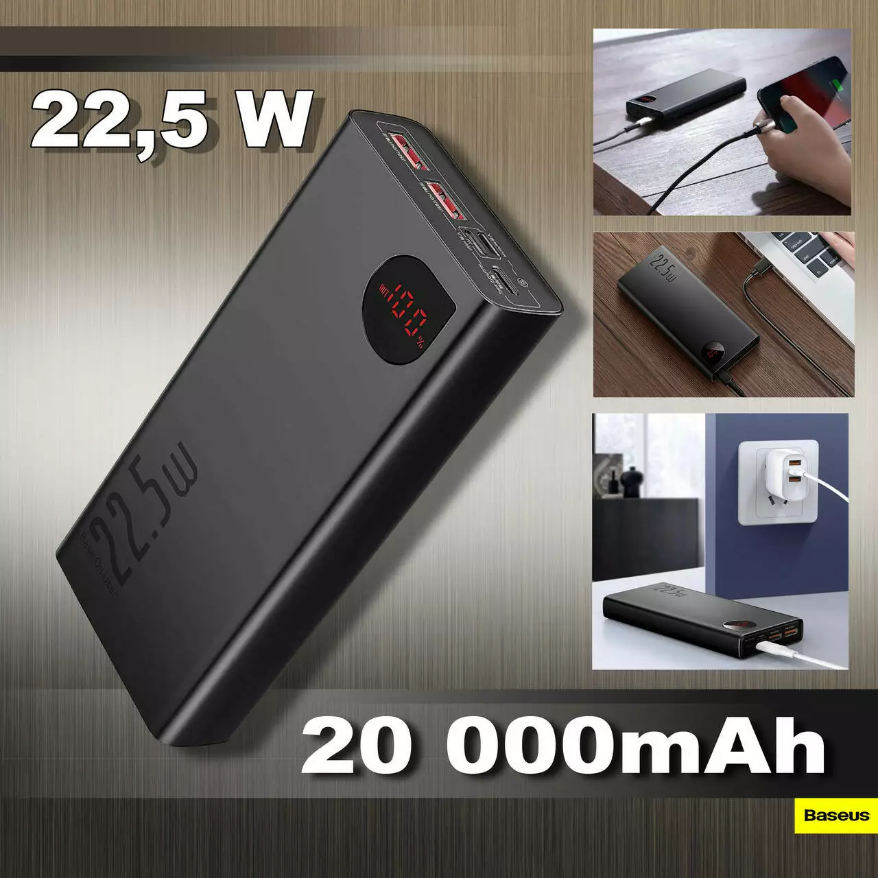 Power bank Baseus – ідеальний пристрій для людей, які не люблять неприємних сюрпризів. У дорозі, вдома, на роботі та на відпочинку – де б не розрядився акумулятор у вашому телефоні або іншому електронному пристрої, вам знадобиться власне незалежне джерело енергії. Павербанк Baseus Adaman Metal Digital Display 20000mAh 22.5W допоможе уникнути ситуацій, коли ваш гаджет розрядився. Компактний, стильний і достатньо потужний, щоб взяти його в сумку куди б Ви не відправились!