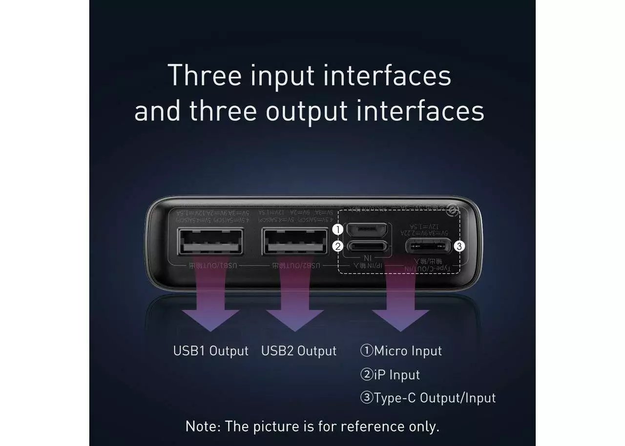 3 роз'єми можна використовувати для зарядки Павербанка (micro USB, Lightning, USB Type-C PD) та 3 Для мобільних пристроїв (USB QC, USB QC, USB Type-C PD). І це не помилка під час розрахунків. Роз'єм USB Type-C можна використовувати для зарядки смартфону, макбука, а також для зарядки самого акумулятора. Таке використання портів дасть можливість заряджати до 3 ґаджетів одночасно.
