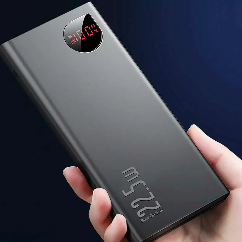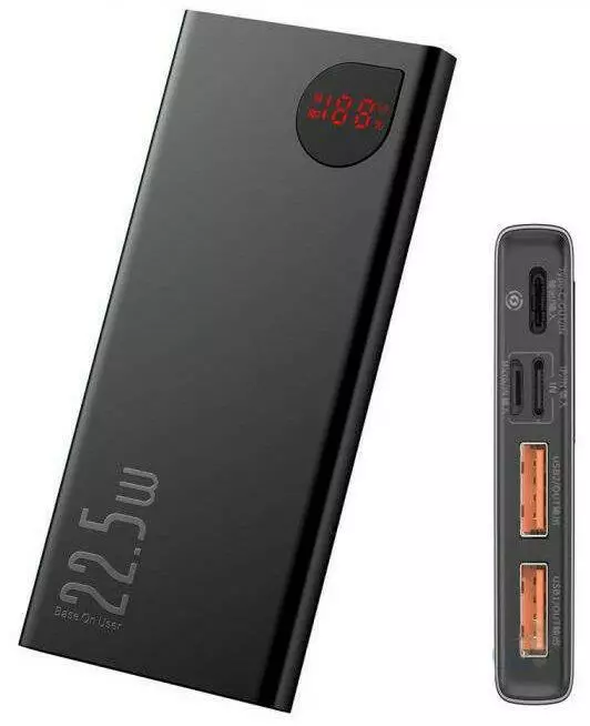 Корпус моделі виготовлено з міцного металевого сплаву та вогнетривкого ABS-пластику, що робить зовнішній акумулятор стійким до подряпин і тріщин. Інформація про поточну вихідну напругу, силу струму та рівень заряду, що залишився, відображається на невеликому дисплеї. Baseus Adaman Metal Digital Display має невелику вагу і компактні габарити, що дає змогу без проблем носити його в сумочці або рюкзаку. Наявність розумної технології зарядки QC і потужність 22.5 W гарантує швидке й ефективне заряджання всіх під'єднаних пристроїв.