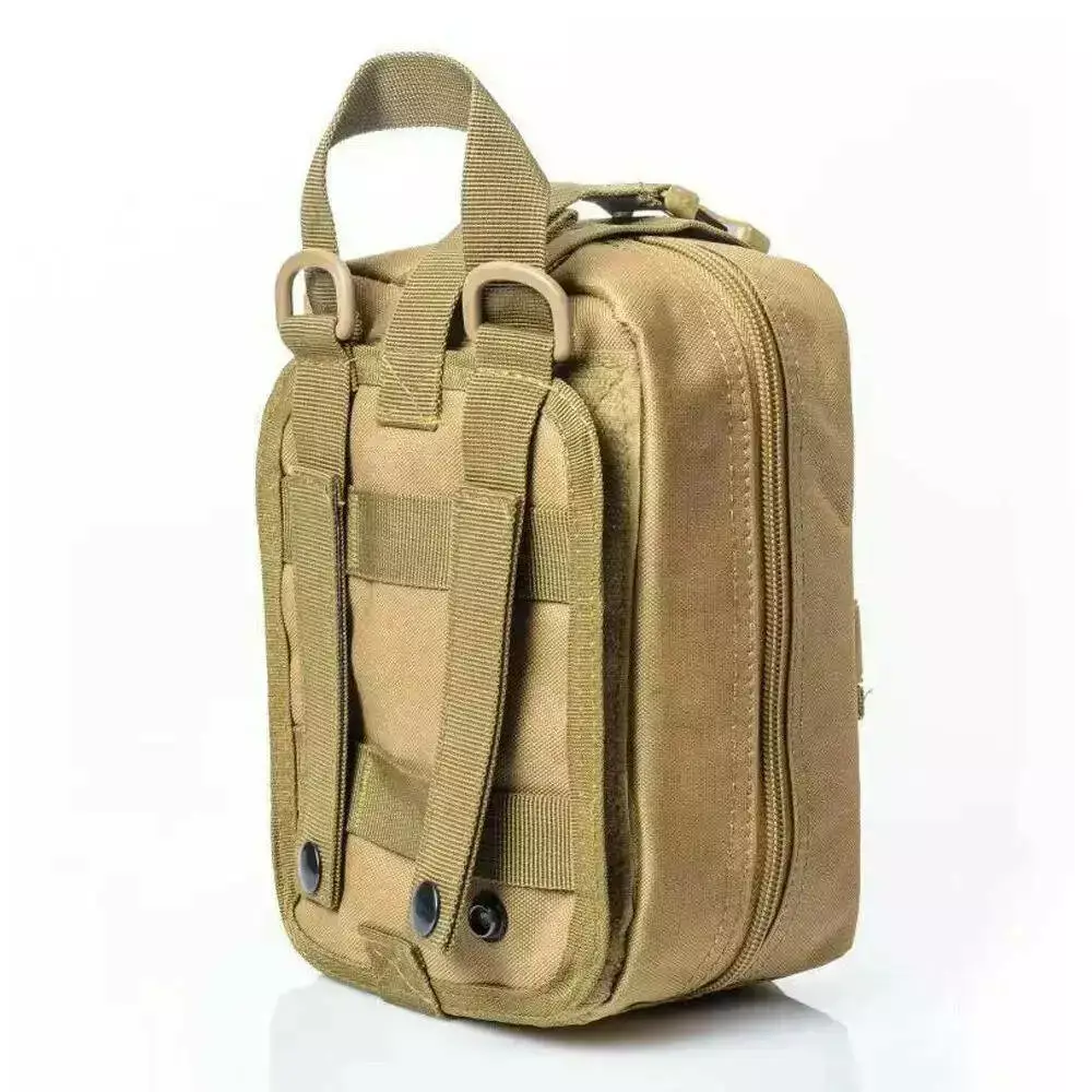 Аптечка тактична (20х15х8 см) на системі Molle – це необхідний інвентар для кожного військового, любителя подорожей, велопоїздок. Ремені для кріплення MOLLE та велкро для швидкого скиду дозволяють витрачати менше часу для надання допомоги. Матеріал: міцна водонепроникна поліефірна тканина. Міцна подвійна застібка, включає двосторонню безшумну блискавку.