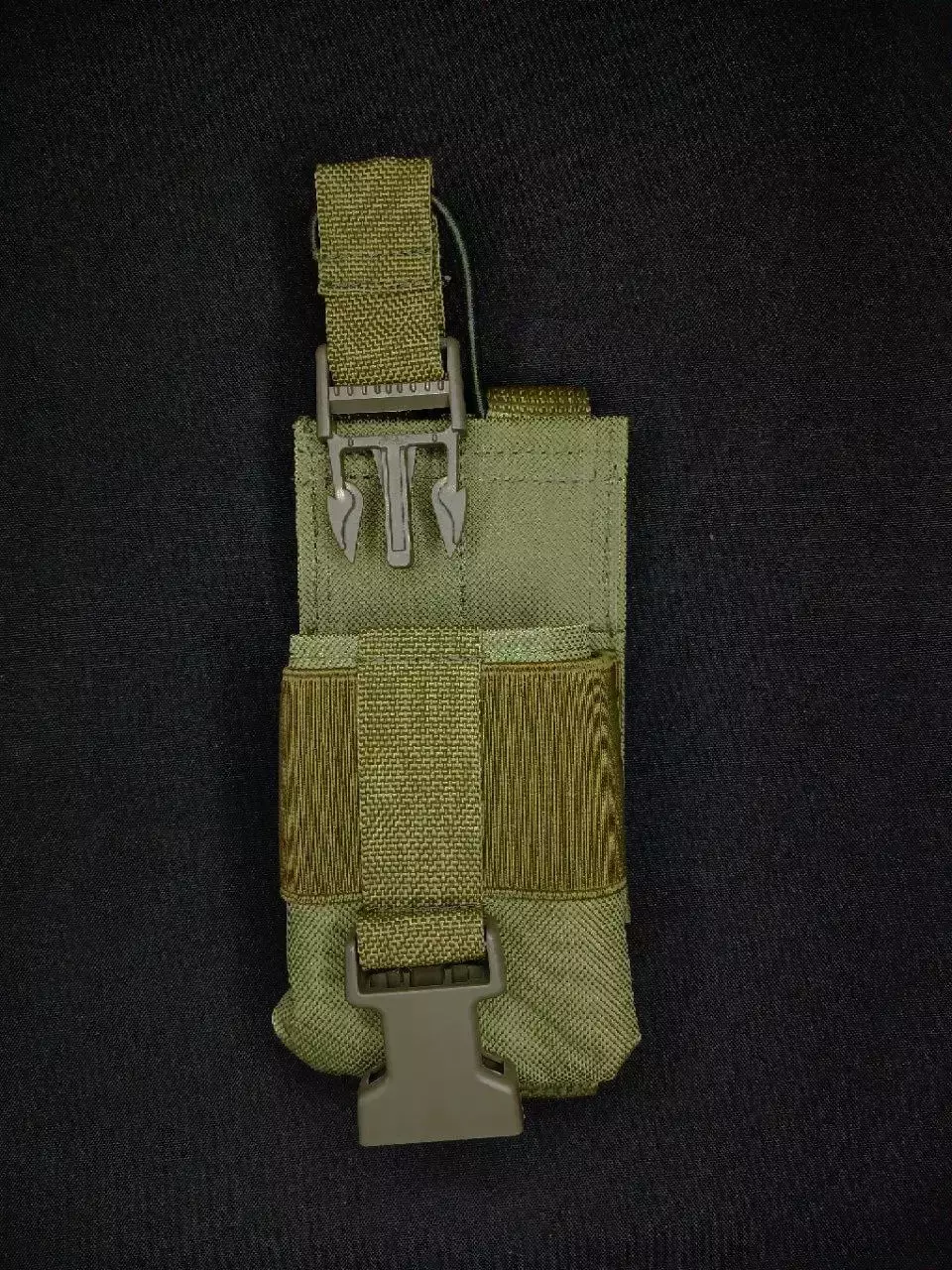 - рація в підсумку фіксується двома способами: корпус з боків фіксується широкою гумкою, а у верхній частині - за допомогою посиленої гумки та фастекса, що унеможливлює випадкове відкриття або випадання;