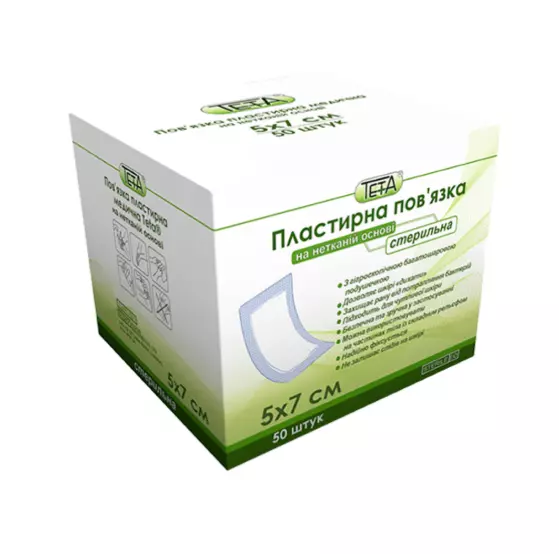Пластирна пов'язка медична Тета, стерильна, неткана, 5 х 7 см
