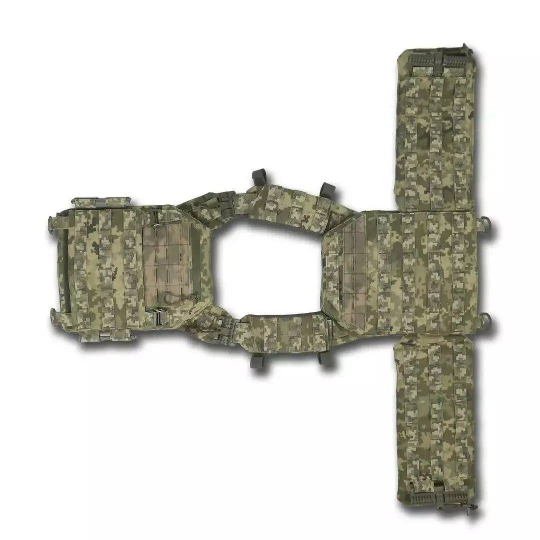 Камербанди мають 3 ряди строп Molle для кріплення підсумків і кишені під балістичні пакети 1-го або 2-го класу від компанії Militex, які можна придбати у нас разом із плитоноскою.