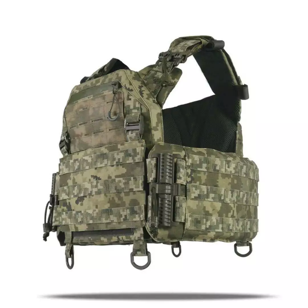 Плитоноска оснащена з’ємною передньою Molle панеллю яка кріпиться до основи на Velcro та додатково двома карабінами Woojin. На ній зручно розміщуються 3 підсумки під 1 або два магазини, або інше Molle-сумісне спорядження. Цю панель можна швидко замінити на іншу із закрікленим на неї заздалегідь набором потрібних підсумків.