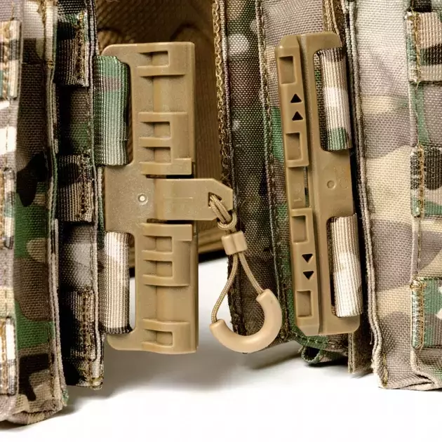 Плечові ремені обладнані додатковими чохлами для комфортного носіння жилета із системою MOLLE.