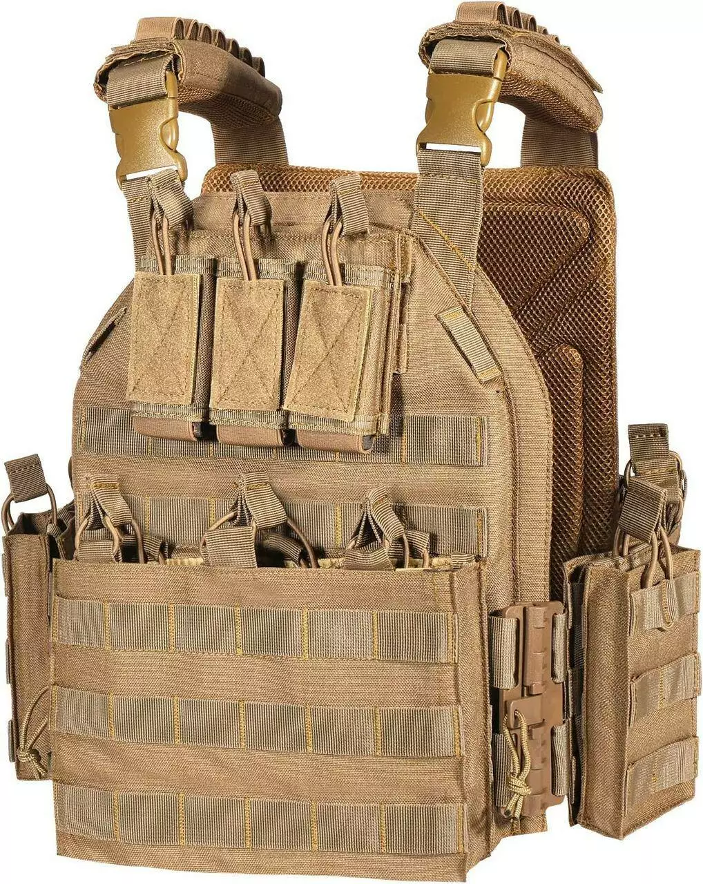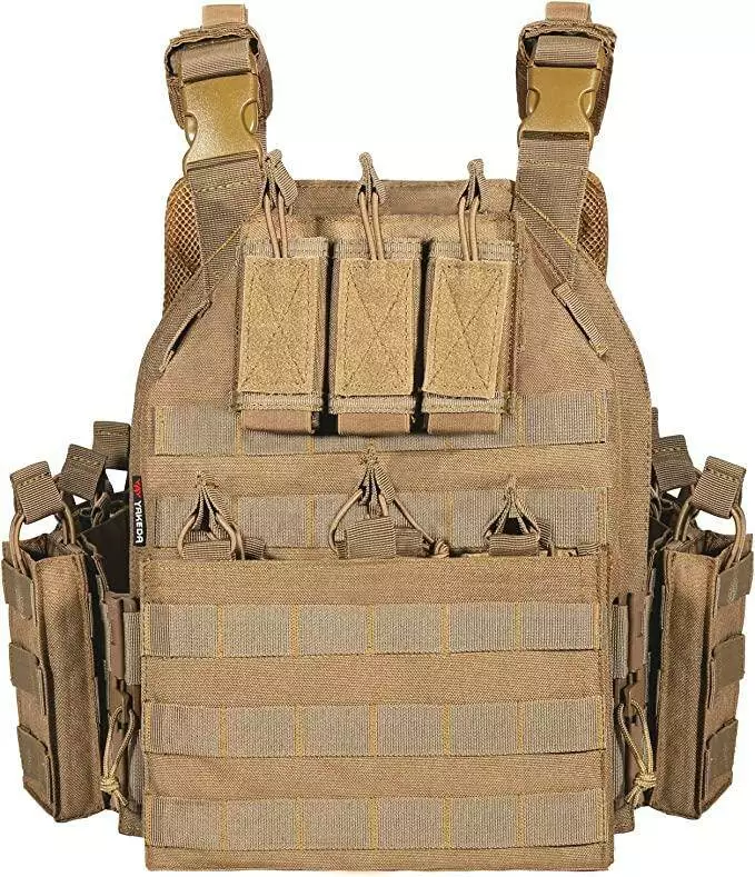 Плитоноска-тактичний військовий жилет YAKEDA VT-6026-1 з підсумками під дев'ять магазинів Койот
