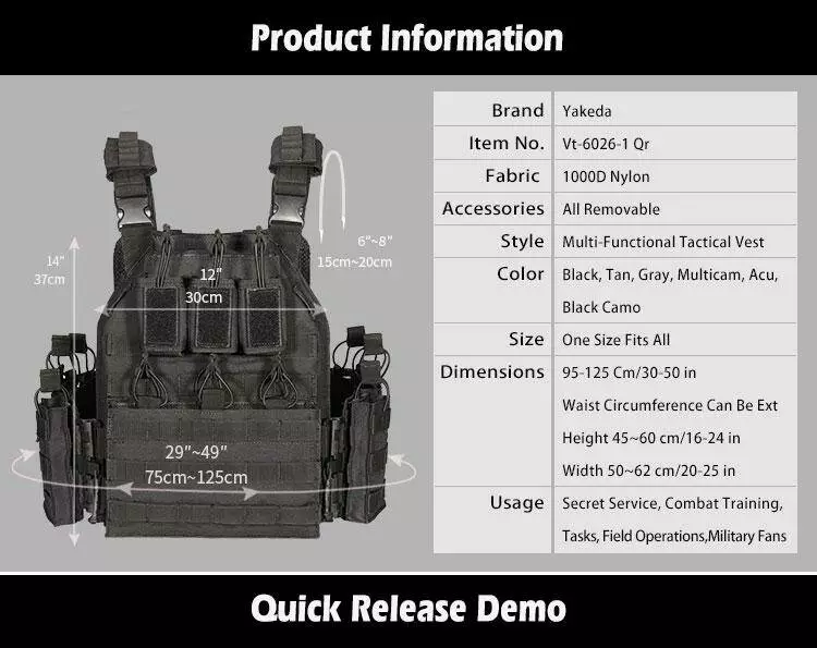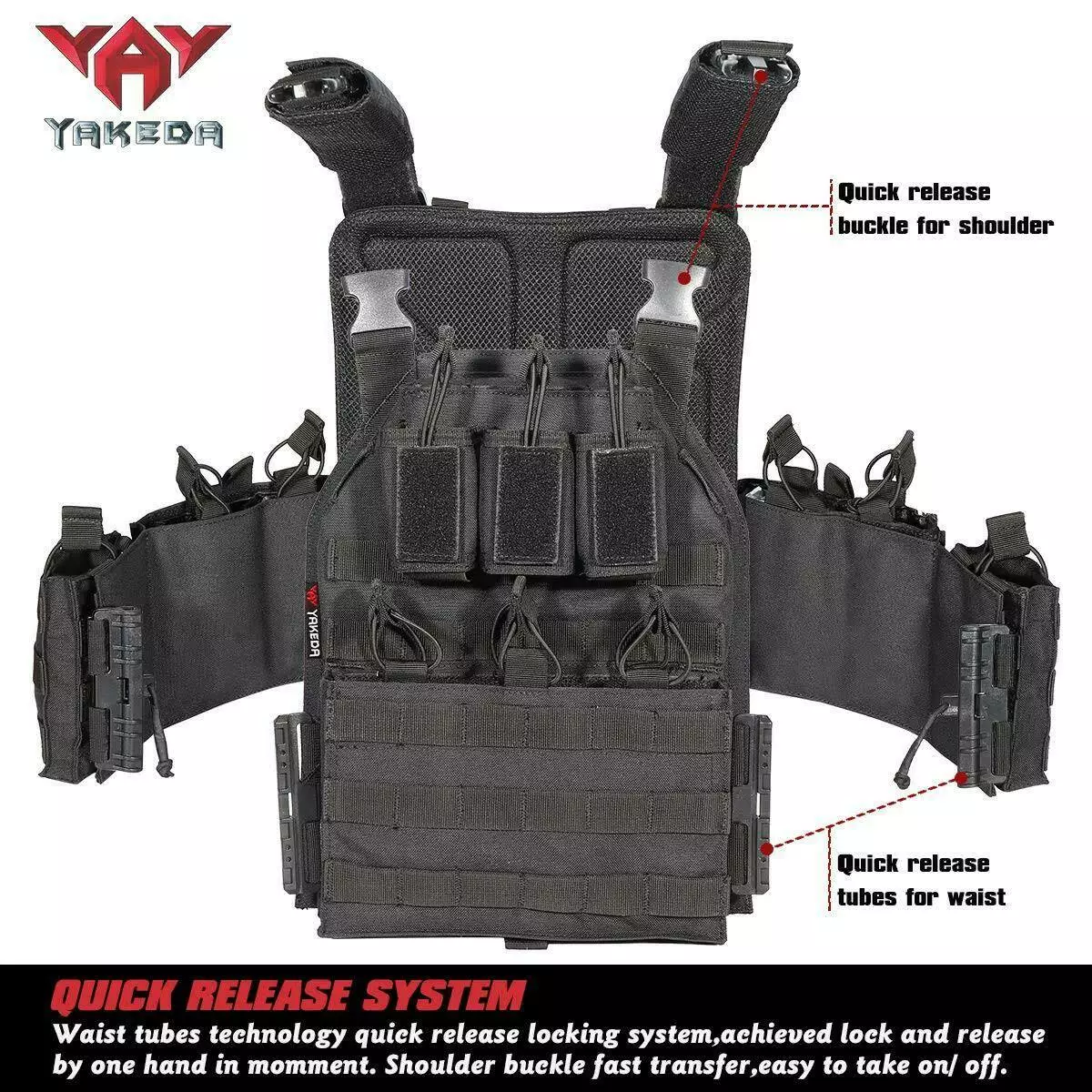 Плитоноска-тактичний військовий жилет YAKEDA VT-6026-1 з підсумками під дев'ять ріжків і з системою MOLLE Чорний
