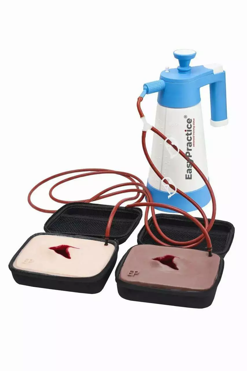 подвійна система подачі розчину, виготовлена із силіконових трубок довжиною 150 см з двома незалежними конекторами-зажимами керування потоку рідини. Систему можна використовувати з усіма симуляторами контролю кровотечі Easy Practice.