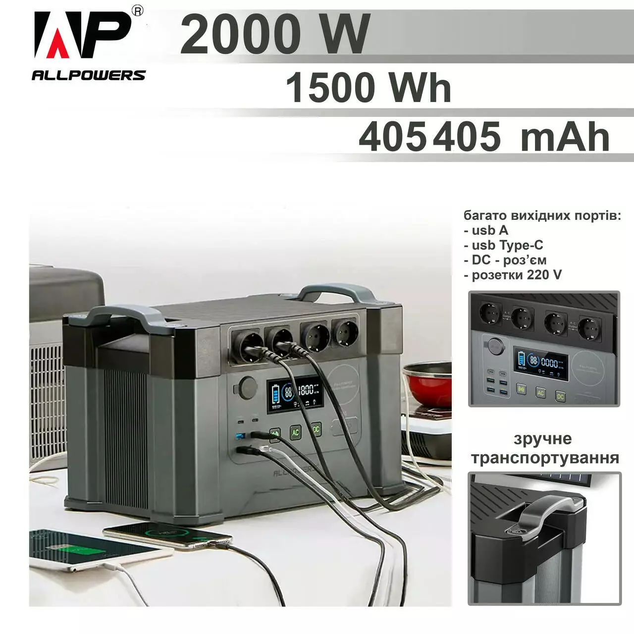 Портативна зарядна станція Allpowers S2000 405 405 mAh (1500Wh) з 4 розетками 220V EU (AP-SS-009)