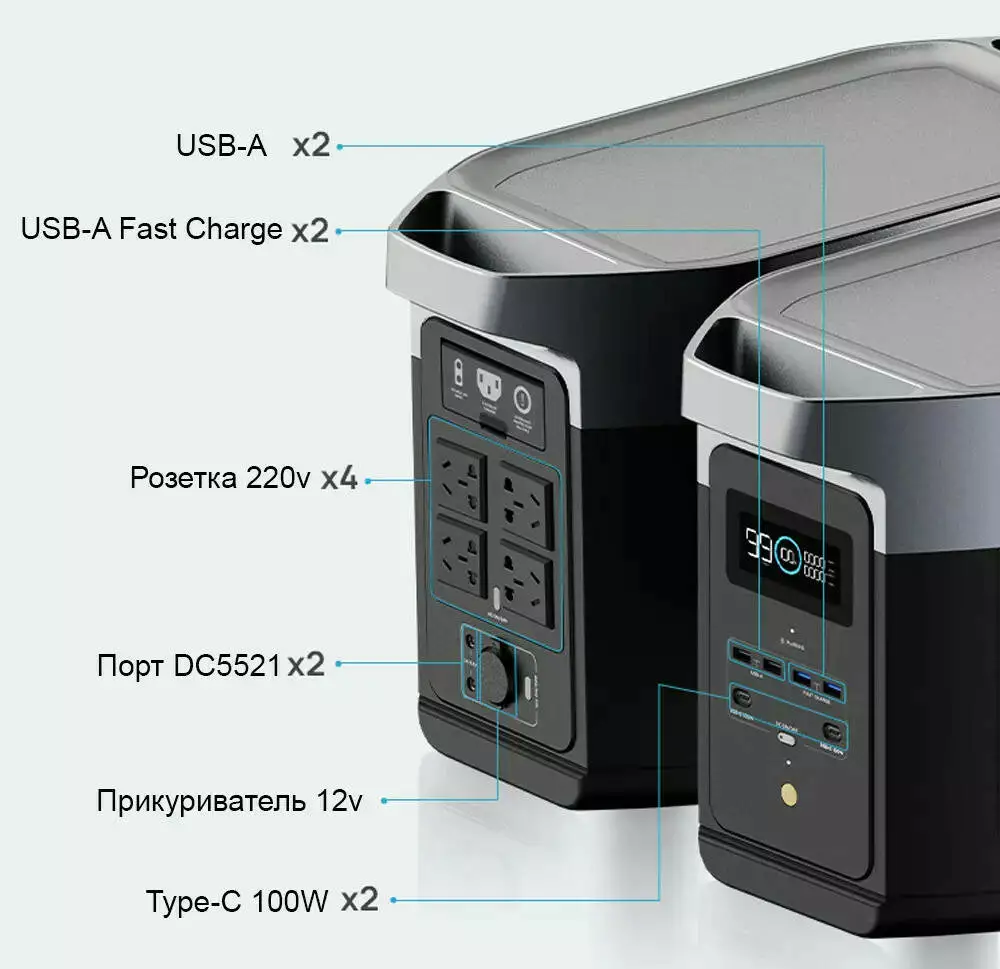 - Роз'єми: USB|Type-C|DC|Розетка AC 220В