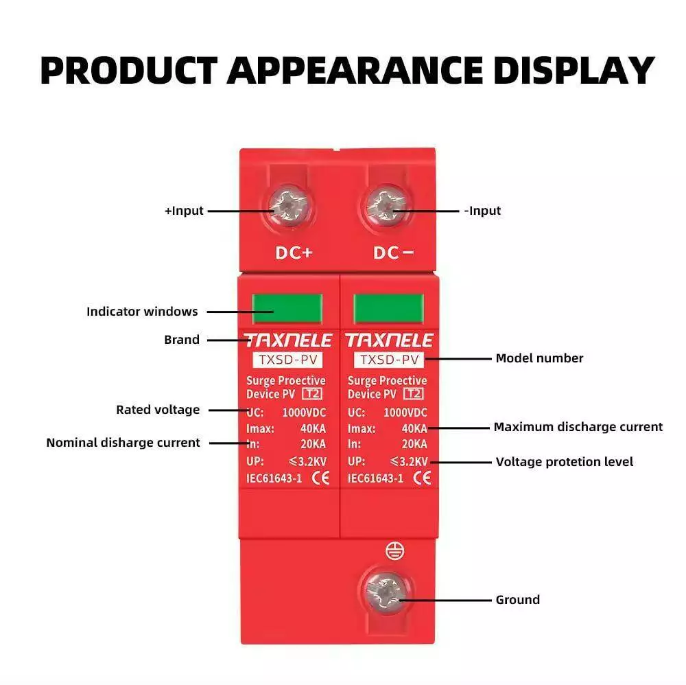 Цей пристрій має номінальну напругу 1000 В та розривну ємність 40 кА, що дозволяє ефективно реагувати на непередбачені ситуації та запобігати пошкодженню обладнання. Він встановлюється на лінії постійного струму фотоелектричних систем і гарантує надійний захист від перепадів напруги, які можуть виникнути під час роботи сонячної установки.