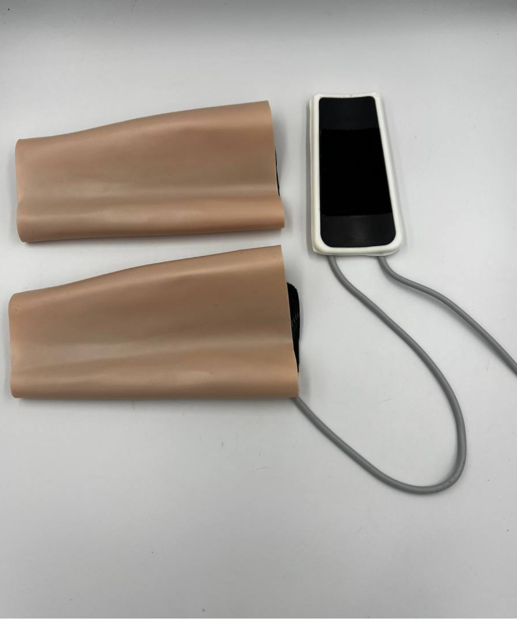 Тренажер призначений для навчання та практичного відпрацювання техніки виконання внутрішньовенних ін’єкцій. Модель у вигляді рукава-накладки забезпечує реалістичну імітацію людської шкіри, дозволяючи відпрацьовувати навички введення голки, пошуку вени та правильного положення при проколі.