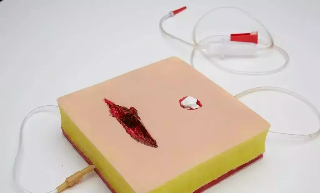Судина на дні ранового каналу заповнюється імітатором крові через інфузійні системи