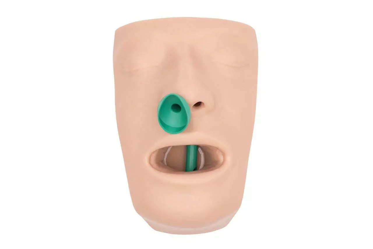 Призначення: Тренажер призначений для навчання правильному введенню назофарингеального повітроводу через носовий хід, забезпечуючи прохідність дихальних шляхів у постраждалого.