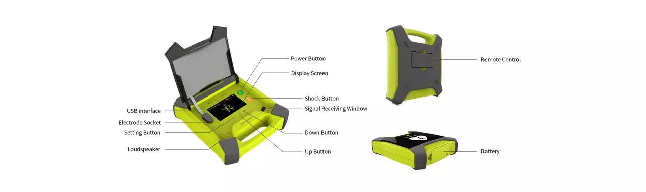 Цей тренувальний пристрій AED призначений тільки для тренувальних цілей і не може використовуватися для реальної дефібриляції пацієнта. Без джерела високої напруги може бути забезпечена безпека всієї програми навчання AED. Після відкриття обкладинки, пристрій AED автоматично вмикається, що дозволяє ефективно навчання AED