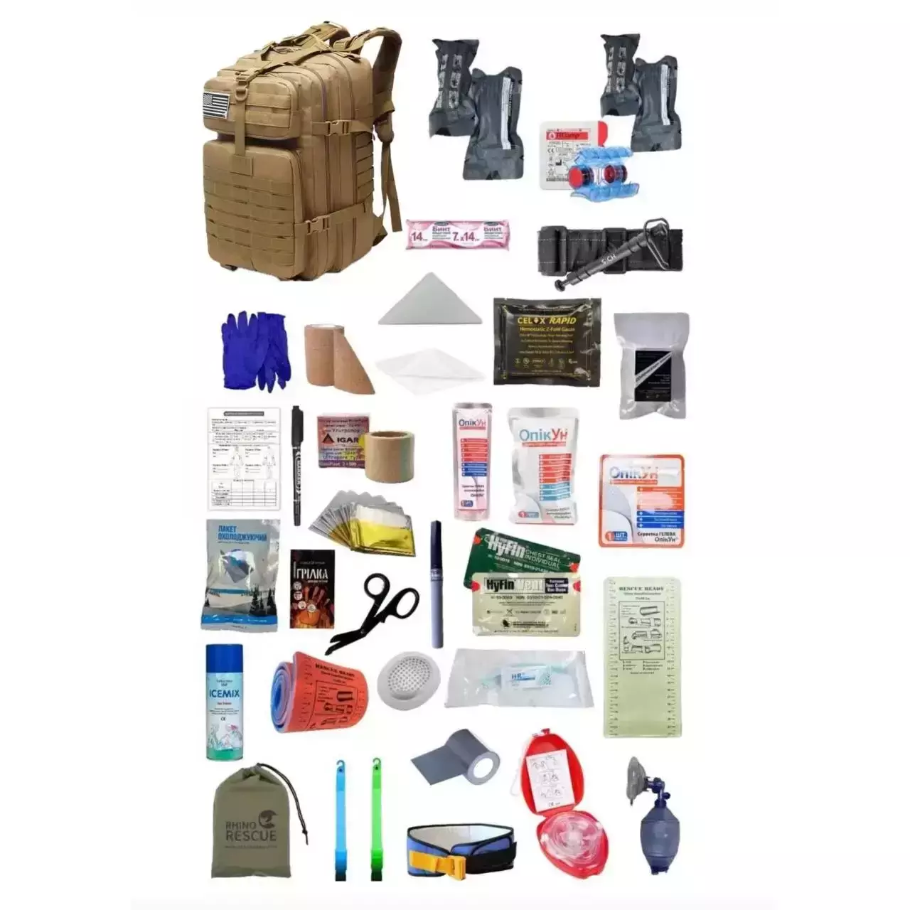 Укомплектований медичний тактичний рюкзак №3 (СІЧ+Celox Rapid) Койот