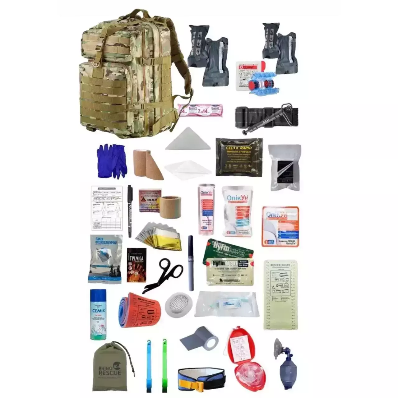 Укомплектований медичний тактичний рюкзак №3 (СІЧ+Celox Rapid) Мультикам