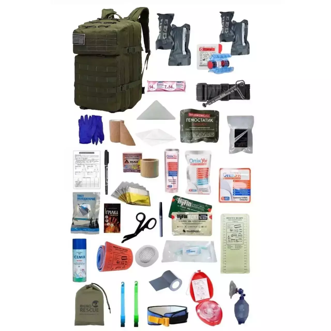 Укомплектований медичний тактичний рюкзак №3 (СІЧ+Гемостатик) Олива